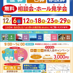 2026年1月、「家族葬の想 駅南」では、直葬・一日葬・家族葬に関する無料相談会とホール見学会を開催いたします。ご葬儀に関する不安や疑問に対して、経験豊富なスタッフが丁寧にご案内いたします。ご相談・お見積りはすべて無料。事前予約も不要で、どなたでもお気軽にご参加いただけます。 開催日は1月10日(土)、16日(金)、21日(水)、27日(火)の4日間。いずれも9時から14時まで開催しており、お好き…12月無料相談会&ホール見学会のお知らせ